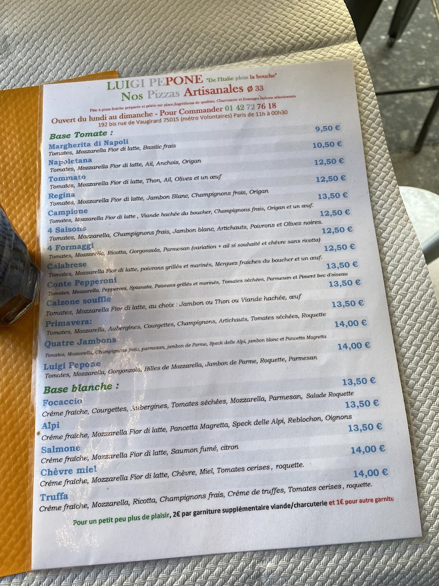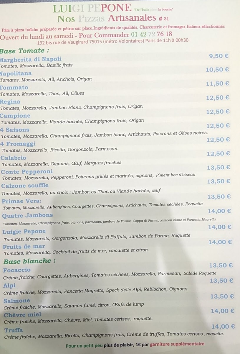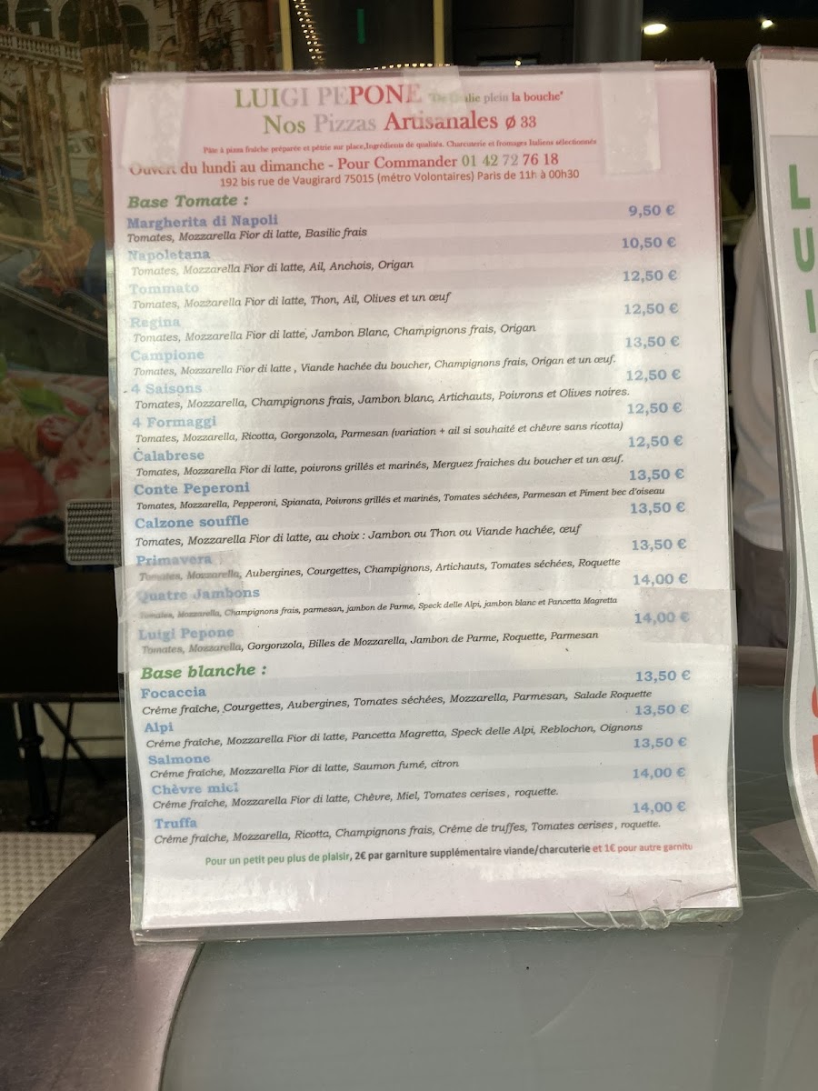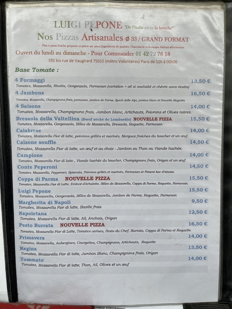 Pizzeria Luigi Pepone Menu