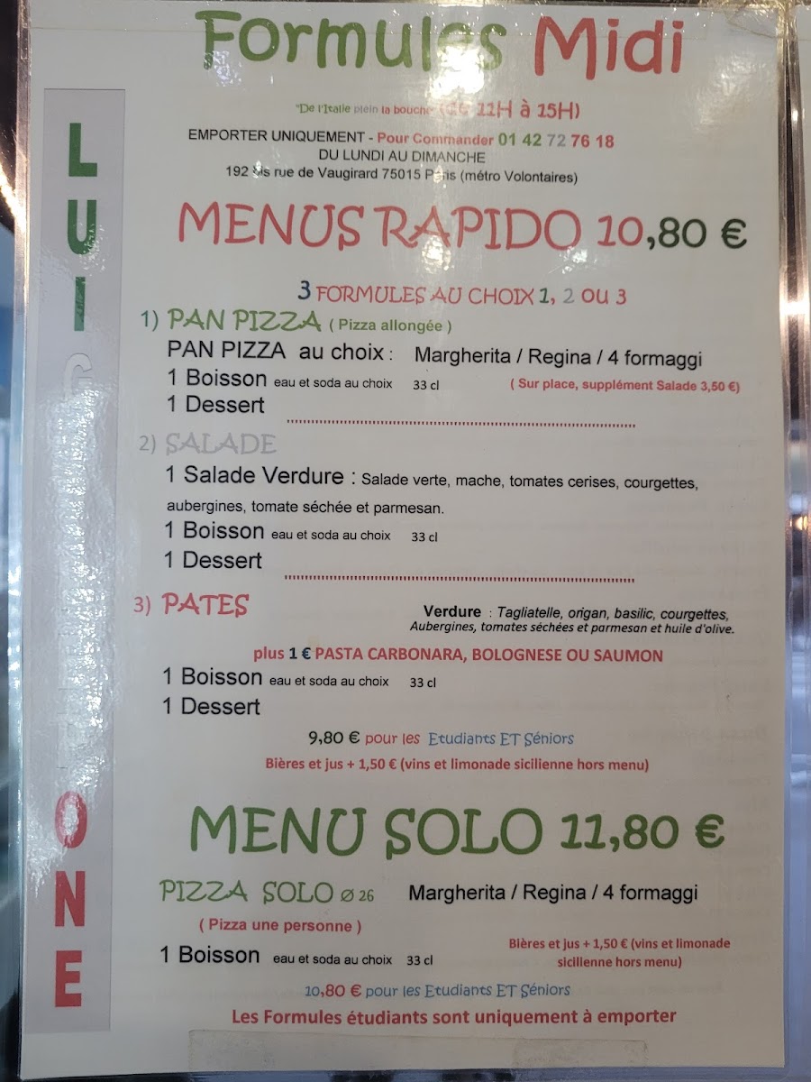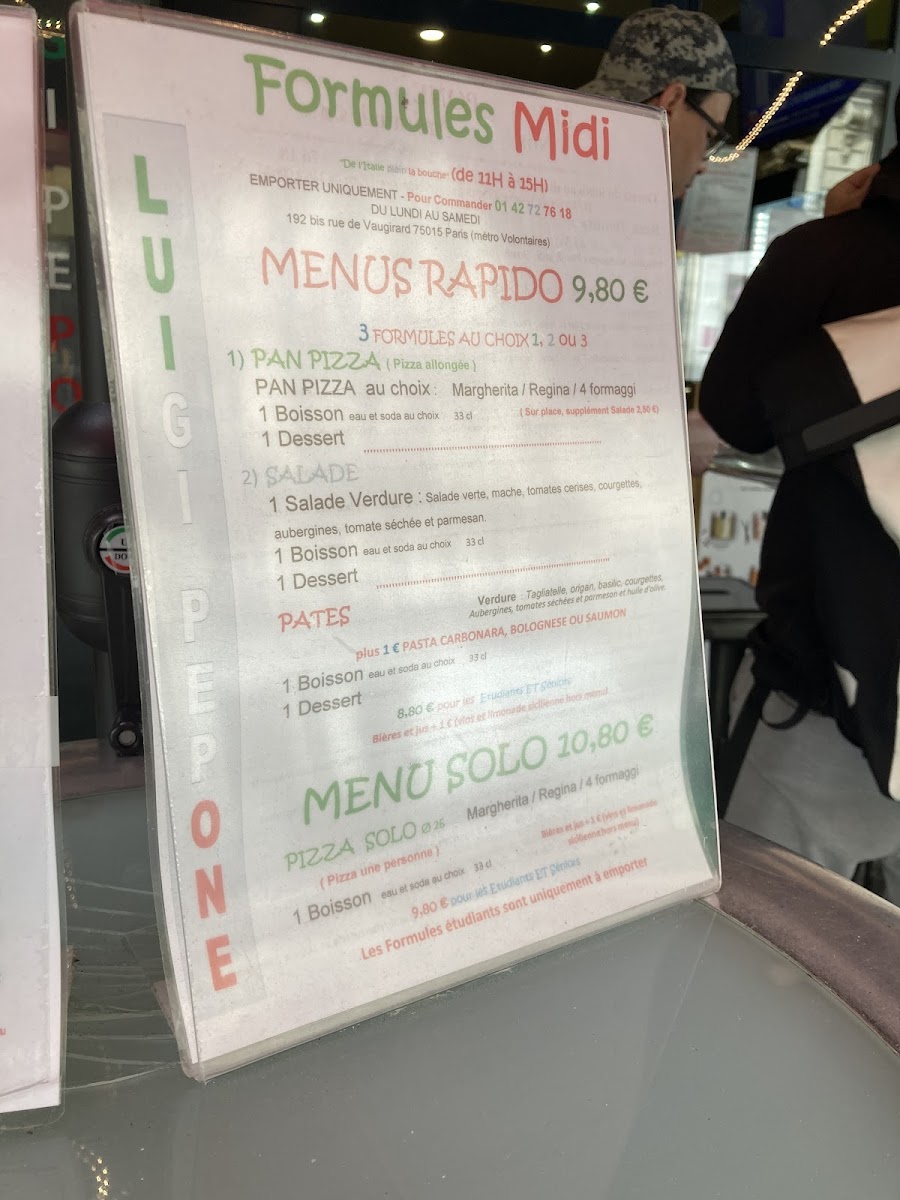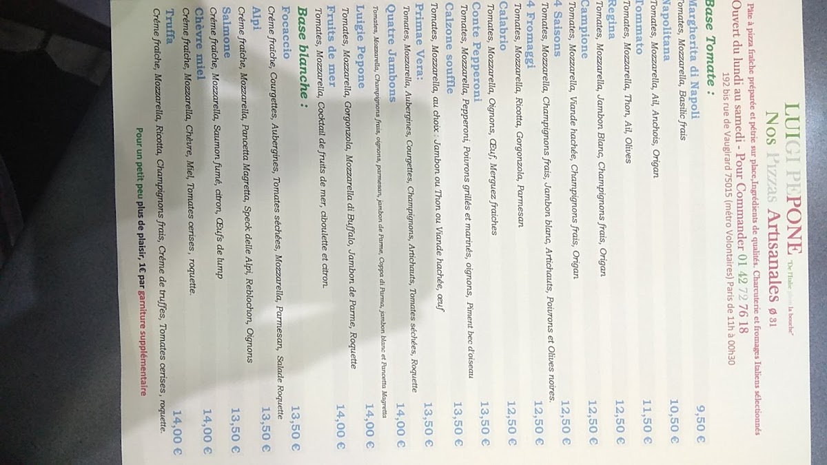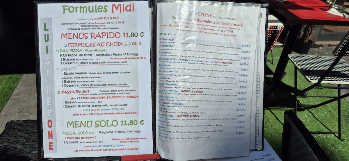 Pizzeria Luigi Pepone Menu